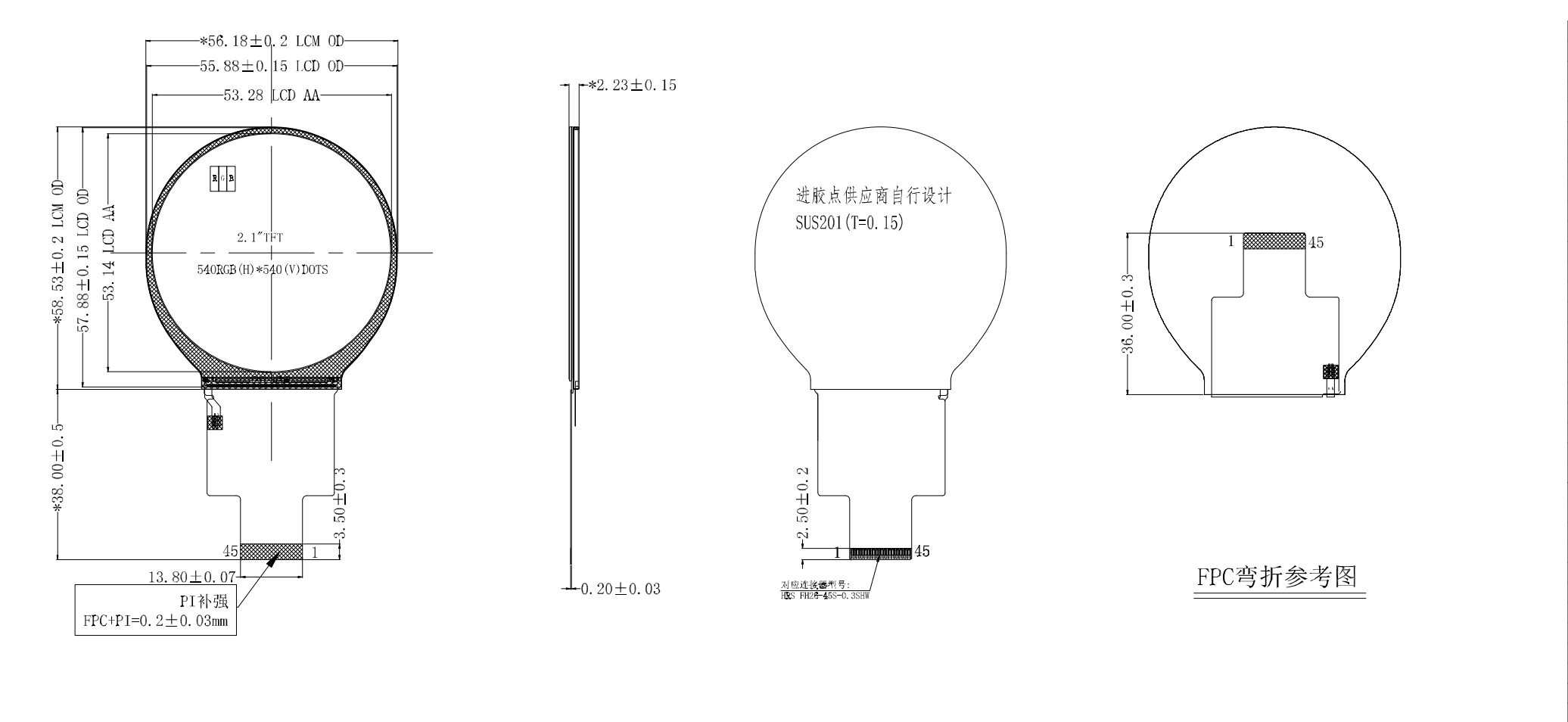 2,1-Zoll-Incell-Rund-LCD 540*540 QSPI/SPI/MCU